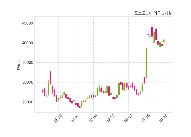 한편, 포스코DX은 장 마감 이후 해당 기업공시를 발표했으며 오늘 종가가 40,850원, 거래량은 2,898,463주로, 직전 거래일 대비 1,500원(+3.81%) 상승했다.