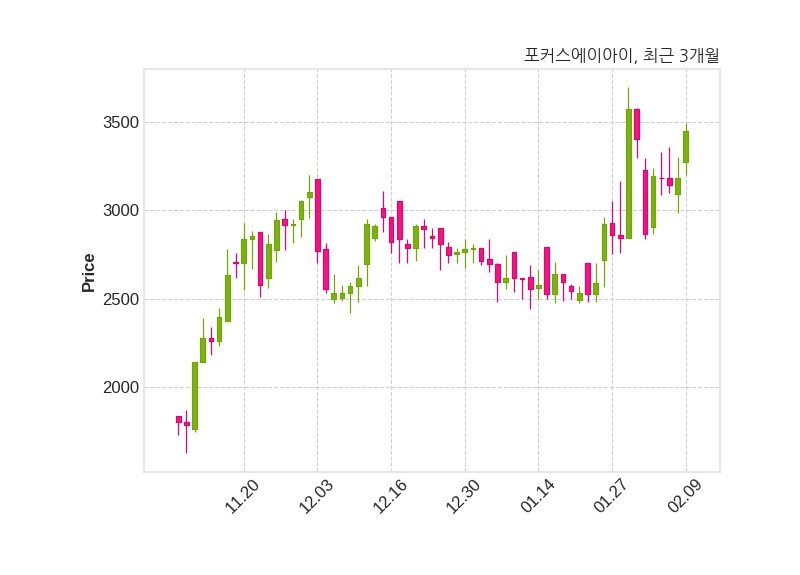 한편, 포커스에이아이는 장 시작 전에 해당 기업공시를 발표했으며 전날 종가가 3,450원이었다.