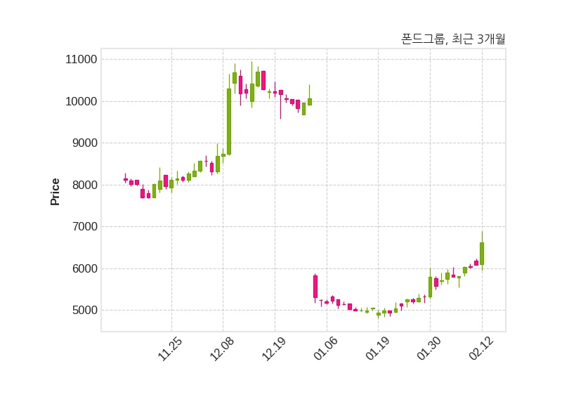 한편, 폰드그룹의 12시 32분 현재주가는 6,620원으로 직전 거래일 대비 540원(+8.88%) 상승이며, 거래량은 124,224주이다.