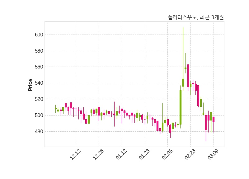 한편, 폴라리스우노는 장 마감 이후 해당 기업공시를 발표했으며 오늘 종가가 492원, 거래량은 285,403주로, 직전 거래일 대비 12원(-2.38%) 하락했다.