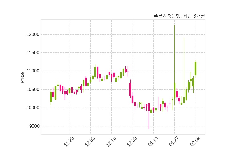 한편, 푸른저축은행은 장 마감 이후 해당 기업공시를 발표했으며 오늘 종가가 11,240원, 거래량은 102,357주로, 직전 거래일 대비 440원(+4.07%) 상승했다.