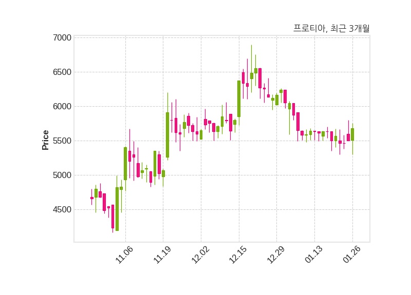한편, 프로티아는 장 마감 이후 해당 기업공시를 발표했으며 오늘 종가가 5,680원, 거래량은 80,234주로, 직전 거래일 대비 180원(+3.27%) 상승했다.