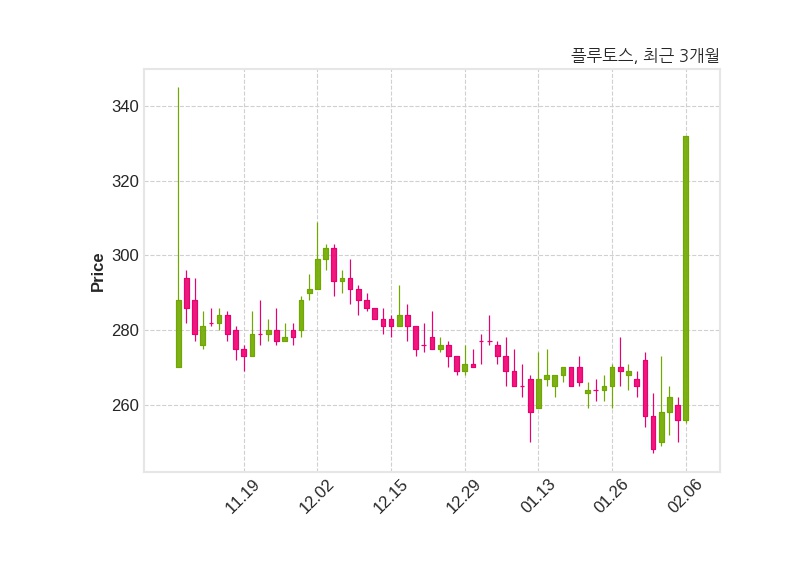 한편, 플루토스는 장 마감 이후 해당 기업공시를 발표했으며 오늘 종가가 332원, 거래량은 13,250,726주로, 직전 거래일 대비 76원(+29.69%) 상승했다.
