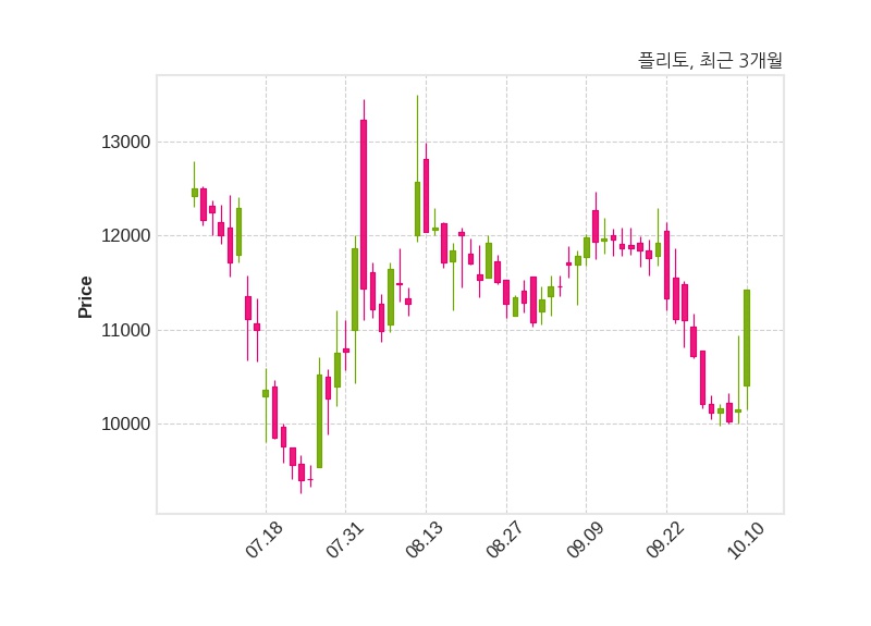 한편, 플리토의 13시 41분 현재주가는 11,430원으로 직전 거래일 대비 1,280원(+12.61%) 상승이며, 거래량은 125,646주이다.