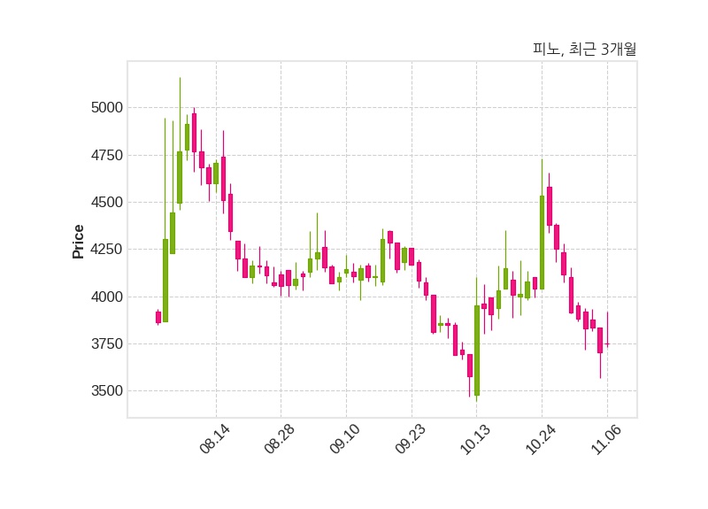 한편, 피노는 장 마감 이후 해당 기업공시를 발표했으며 오늘 종가가 3,750원, 거래량은 159,835주로, 직전 거래일 대비 45원(+1.21%) 상승했다.