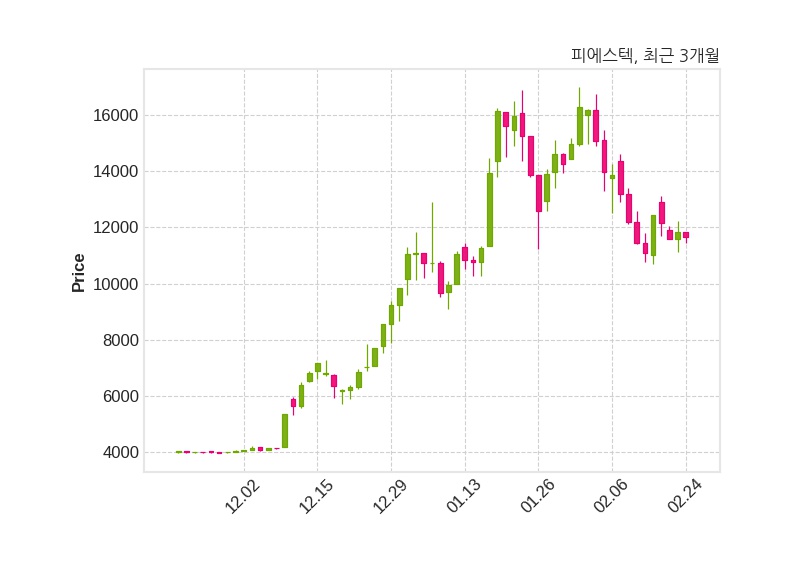 한편, 피에스텍의 10시 26분 현재주가는 11,660원으로 직전 거래일 대비 190원(-1.6%) 하락이며, 거래량은 130,901주이다.
