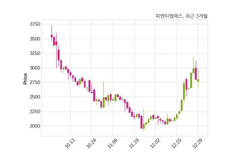 한편, 피엔티엠에스는 장 마감 이후 해당 기업공시를 발표했으며 오늘 종가가 2,800원, 거래량은 83,869주로, 직전 거래일 대비 변동이없다.