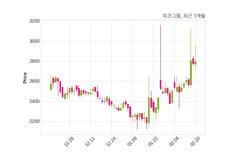 한편, 피코그램의 15시 17분 현재주가는 2,795원으로 직전 거래일 대비 20원(+0.72%) 상승이며, 거래량은 1,203,330주이다.