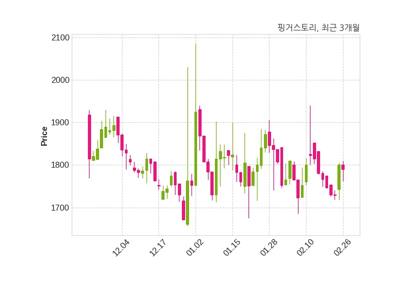 한편, 핑거스토리는 장 마감 이후 해당 기업공시를 발표했으며 오늘 종가가 1,790원, 거래량은 85,821주로, 직전 거래일 대비 10원(-0.56%) 하락했다.