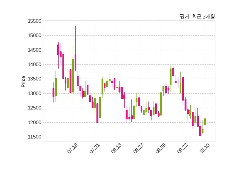 핑거는 특별관계자 한국증권금융의 지분율이 5.02%에서 6.14%로 변동했다고 10일 공시했다. 한편, 핑거의 13시 20분 현재주가는 12,130원으로 직전 거래일 대비 370원(+3.15%) 상승이며, 거래량은 83,828주이다.