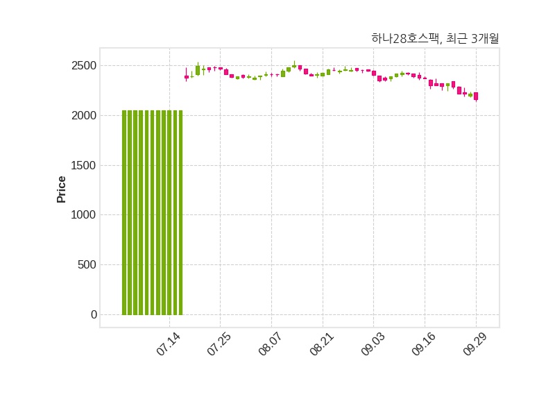 한편, 하나28호스팩은 장 마감 이후 해당 기업공시를 발표했으며 오늘 종가가 2,160원, 거래량은 153,677주로, 직전 거래일 대비 55원(-2.48%) 하락했다.