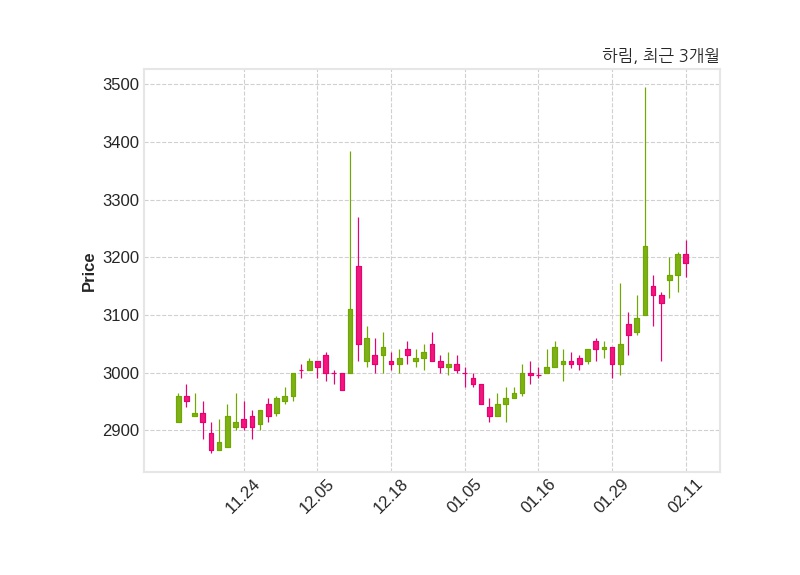 한편, 하림은 장 마감 이후 해당 기업공시를 발표했으며 오늘 종가가 3,190원, 거래량은 663,378주로, 직전 거래일 대비 15원(-0.47%) 하락했다.