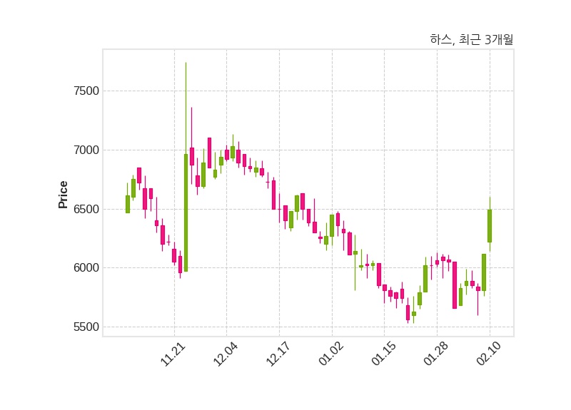 한편, 하스는 장 마감 이후 해당 기업공시를 발표했으며 오늘 종가가 6,490원, 거래량은 206,621주로, 직전 거래일 대비 370원(+6.05%) 상승했다.