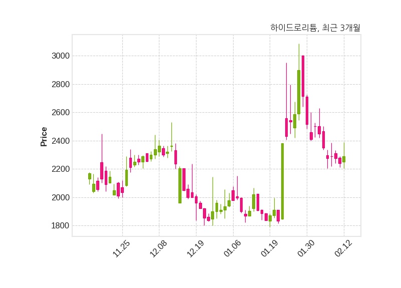 한편, 하이드로리튬은 장 마감 이후 해당 기업공시를 발표했으며 오늘 종가가 2,290원, 거래량은 1,200,894주로, 직전 거래일 대비 50원(+2.23%) 상승했다.
