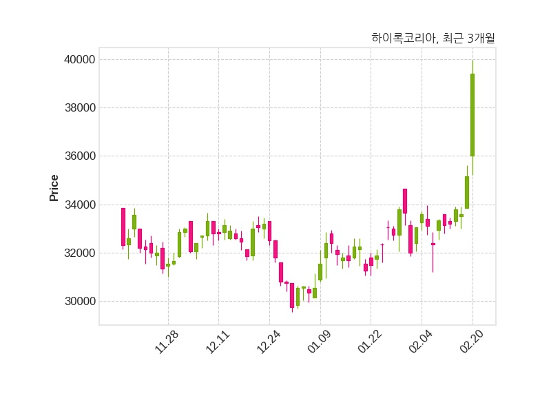 한편, 하이록코리아의 14시 50분 현재주가는 39,400원으로 직전 거래일 대비 4,250원(+12.09%) 상승이며, 거래량은 173,918주이다.
