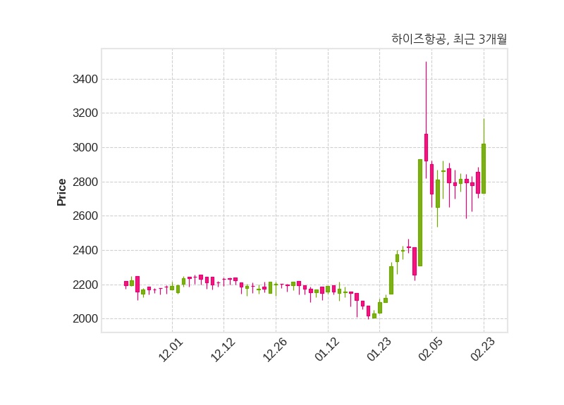한편, 하이즈항공의 13시 19분 현재주가는 3,020원으로 직전 거래일 대비 285원(+10.42%) 상승이며, 거래량은 487,607주이다.