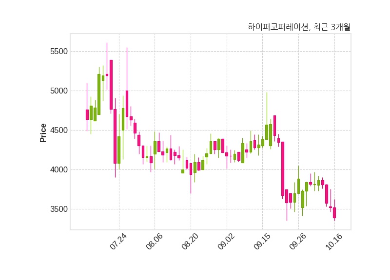 하이퍼코퍼레이션은 특별관계자 수성자산운용의 지분율이 0.0%에서 8.68%로 변동했다고 16일 공시했다. 한편, 하이퍼코퍼레이션은 장 마감 이후 해당 기업공시를 발표했으며 오늘 종가가 3,390원, 거래량은 78,801주로, 직전 거래일 대비 130원(-3.69%) 하락했다.