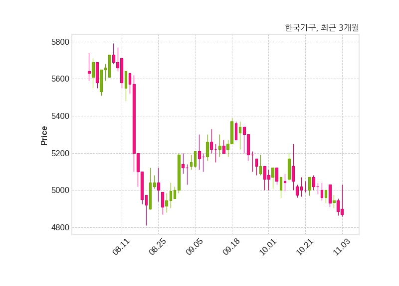 한국가구는 특별관계자 최훈학의 지분율이 56.37%에서 55.79%로 변동했다고 03일 공시했다. 한편, 한국가구는 장 마감 이후 해당 기업공시를 발표했으며 오늘 종가가 4,870원, 거래량은 88,005주로, 직전 거래일 대비 15원(-0.31%) 하락했다.