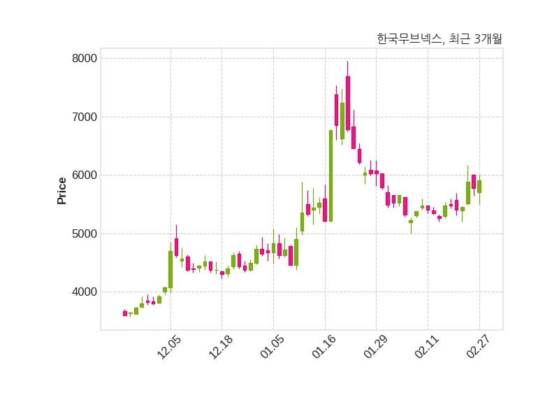한편, 한국무브넥스의 14시 58분 현재주가는 5,910원으로 직전 거래일 대비 130원(+2.25%) 상승이며, 거래량은 1,160,133주이다.