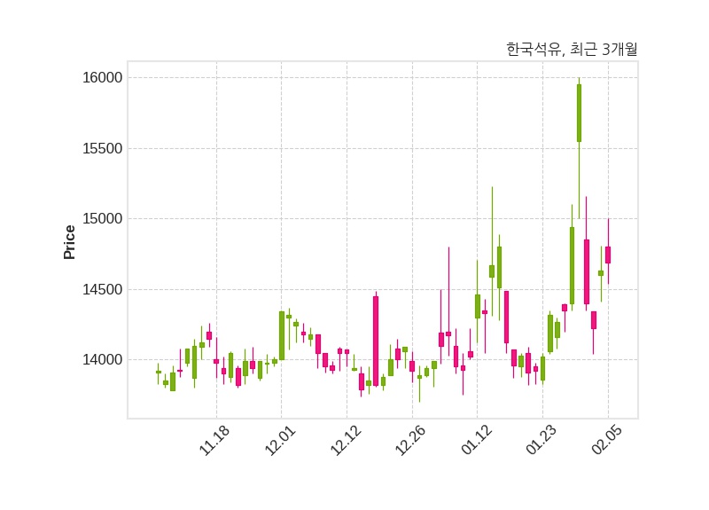 한편, 한국석유공업은 장 마감 이후 해당 기업공시를 발표했으며 오늘 종가가 14,690원, 거래량은 362,501주로, 직전 거래일 대비 60원(+0.41%) 상승했다.