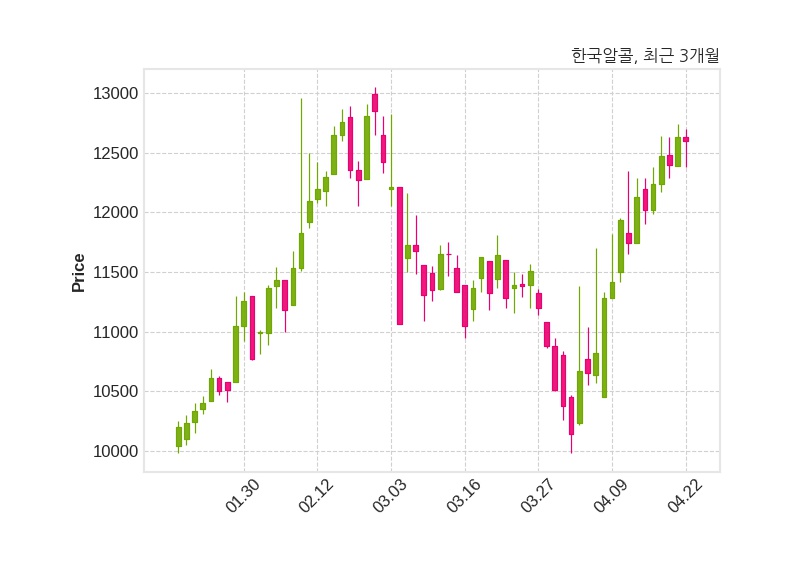 한국알콜은 특별관계자 MiriCapitalManagementLLC의 지분율이 7.79%에서 5.1%로 변동했다고 22일 공시했다. 한편, 한국알콜의 10시 14분 현재주가는 12,600원으로 직전 거래일 대비 30원(-0.24%) 하락이며, 거래량은 29,689주이다.