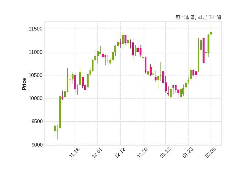 한국알콜은 특별관계자 트러스톤자산운용의 지분율이 7.26%에서 9.37%로 변동했다고 05일 공시했다. 한편, 한국알콜은 장 마감 이후 해당 기업공시를 발표했으며 오늘 종가가 11,430원, 거래량은 96,644주로, 직전 거래일 대비 60원(+0.53%) 상승했다.
