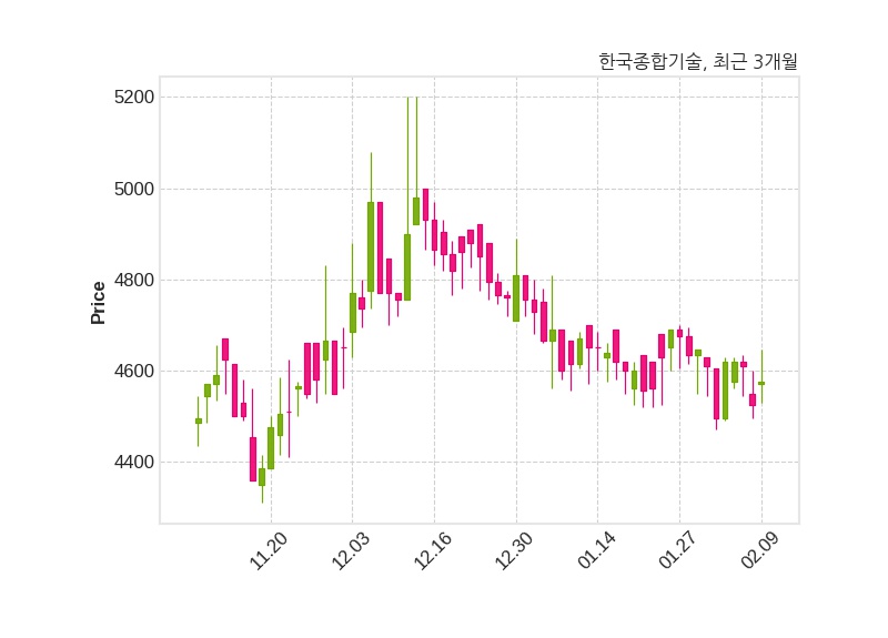 한편, 한국종합기술은 장 마감 이후 해당 기업공시를 발표했으며 오늘 종가가 4,575원, 거래량은 12,319주로, 직전 거래일 대비 50원(+1.1%) 상승했다.