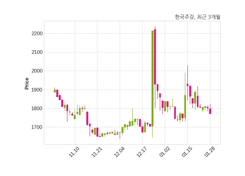 한편, 한국주강의 14시 26분 현재주가는 1,772원으로 직전 거래일 대비 31원(-1.72%) 하락이며, 거래량은 162,394주이다.