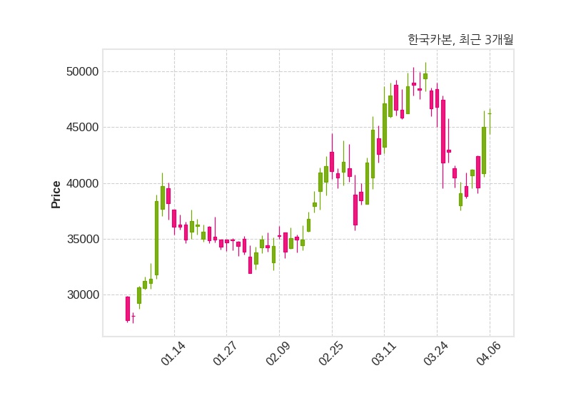 한편, 한국카본은 장 마감 이후 해당 기업공시를 발표했으며 오늘 종가가 46,250원, 거래량은 625,424주로, 직전 거래일 대비 1,250원(+2.78%) 상승했다.