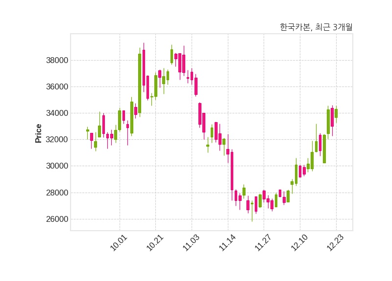 한편, 한국카본은 장 마감 이후 해당 기업공시를 발표했으며 오늘 종가가 34,300원, 거래량은 553,861주로, 직전 거래일 대비 1,300원(+3.94%) 상승했다.