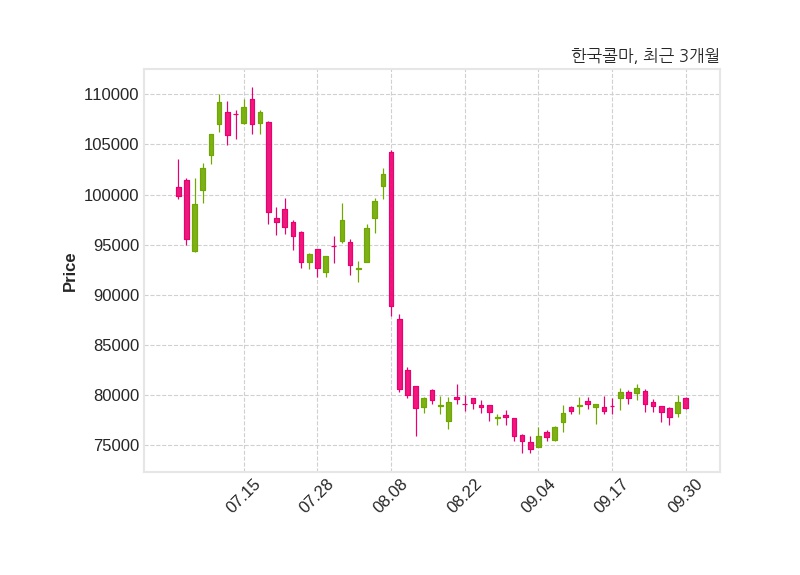 한편, 한국콜마의 12시 05분 현재주가는 78,700원으로 직전 거래일 대비 600원(-0.76%) 하락이며, 거래량은 57,515주이다.