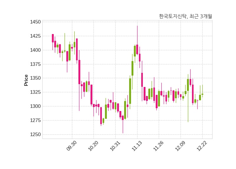 한국토지신탁은 특별관계자 엠케이인베스트먼트의 지분율이 35.73%에서 35.46%로 변동했다고 22일 공시했다. 한편, 한국토지신탁은 장 마감 이후 해당 기업공시를 발표했으며 오늘 종가가 1,322원, 거래량은 150,480주로, 직전 거래일 대비 2원(+0.15%) 상승했다.
