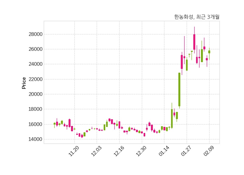 한편, 한농화성은 장 마감 이후 해당 기업공시를 발표했으며 오늘 종가가 25,800원, 거래량은 442,922주로, 직전 거래일 대비 1,250원(+5.09%) 상승했다.