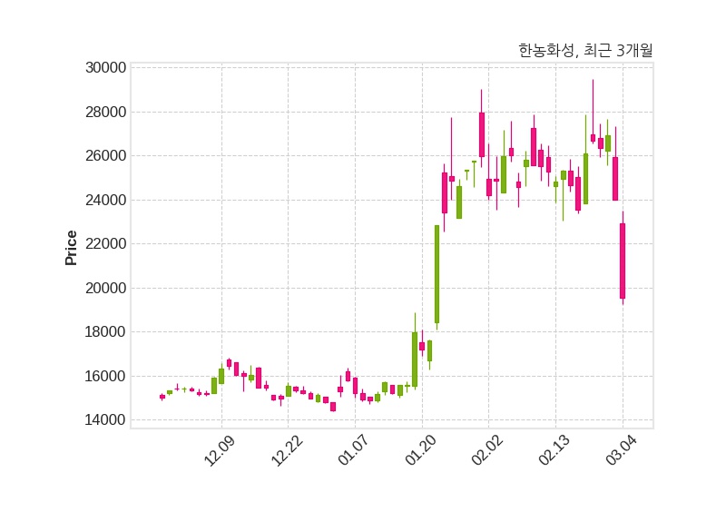 한편, 한농화성은 장 마감 이후 해당 기업공시를 발표했으며 오늘 종가가 19,550원, 거래량은 966,800주로, 직전 거래일 대비 4,450원(-18.54%) 하락했다.