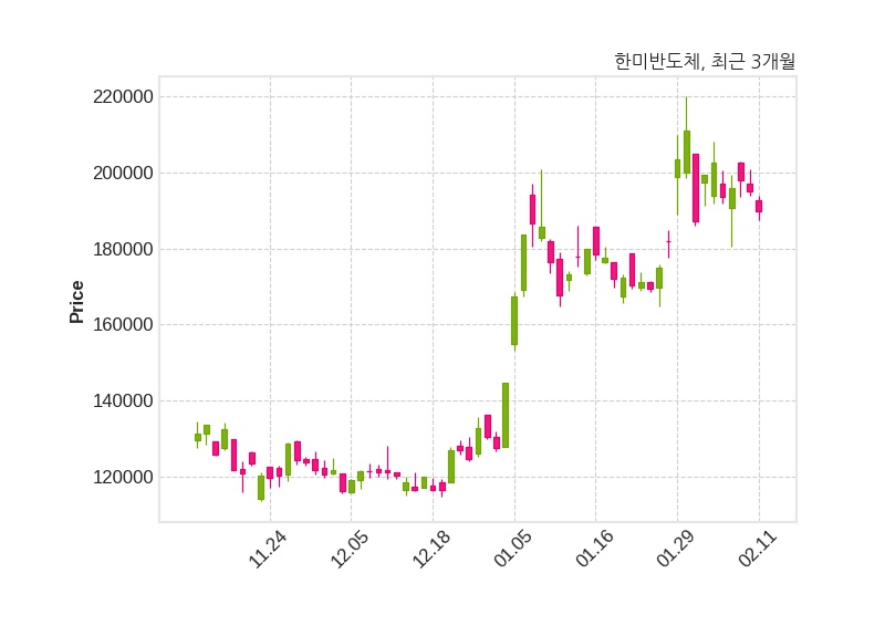한편, 한미반도체의 09시 34분 현재주가는 189,900원으로 직전 거래일 대비 5,000원(-2.57%) 하락이며, 거래량은 211,720주이다.