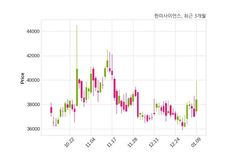 한편, 한미사이언스는 장 마감 이후 해당 기업공시를 발표했으며 오늘 종가가 38,400원, 거래량은 312,813주로, 직전 거래일 대비 1,400원(+3.78%) 상승했다.