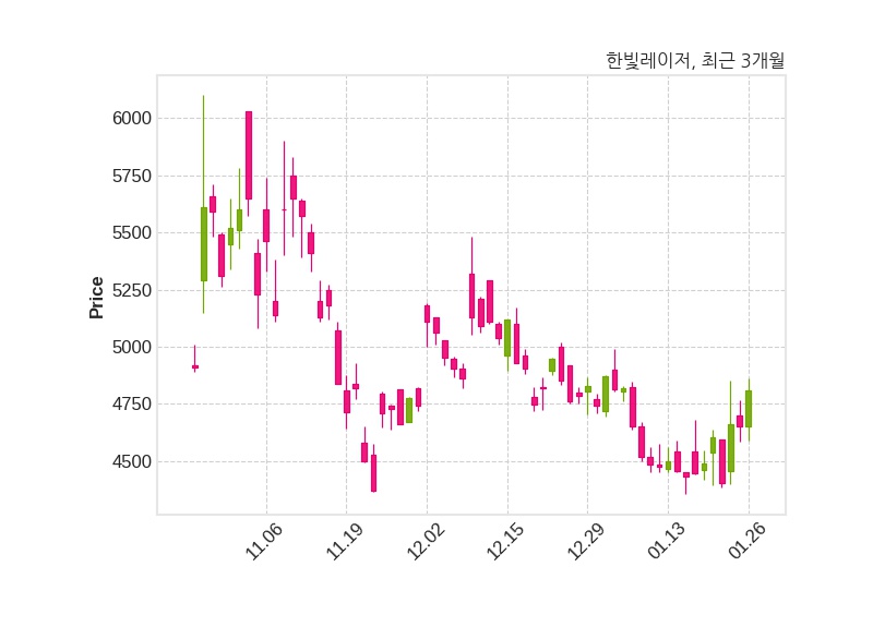 한편, 한빛레이저는 장 마감 이후 해당 기업공시를 발표했으며 오늘 종가가 4,810원, 거래량은 473,725주로, 직전 거래일 대비 160원(+3.44%) 상승했다.
