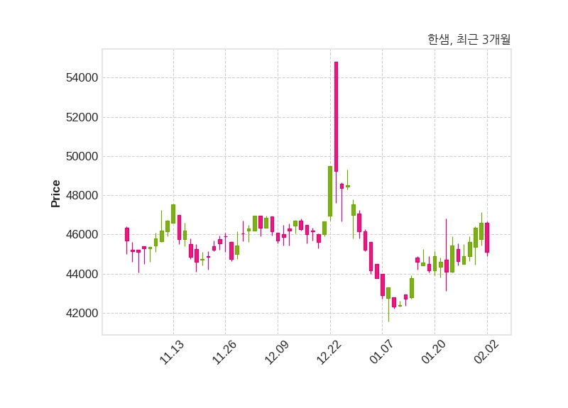 한편, 한샘은 장 마감 이후 해당 기업공시를 발표했으며 오늘 종가가 45,100원, 거래량은 46,090주로, 직전 거래일 대비 1,500원(-3.22%) 하락했다.