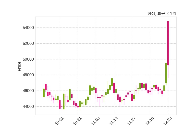 한편, 한샘은 장 마감 이후 해당 기업공시를 발표했으며 오늘 종가가 49,250원, 거래량은 400,047주로, 직전 거래일 대비 250원(-0.51%) 하락했다.