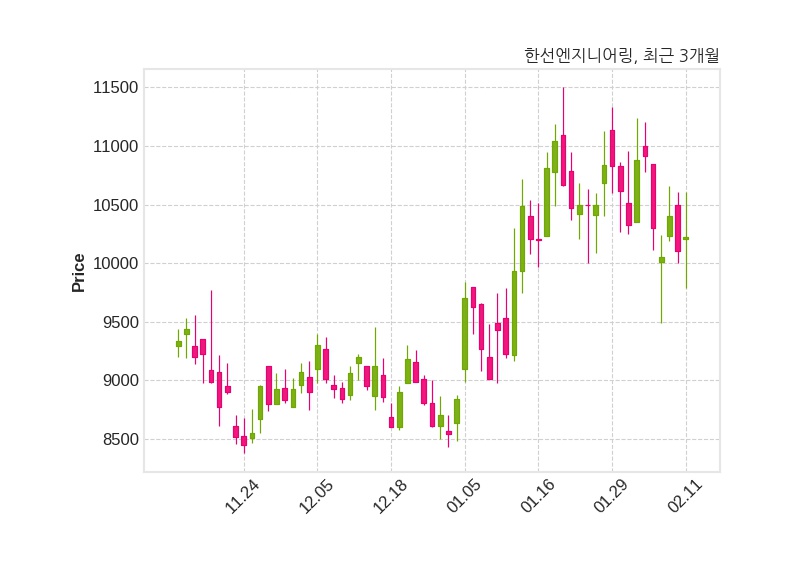 한편, 한선엔지니어링은 장 마감 이후 해당 기업공시를 발표했으며 오늘 종가가 10,220원, 거래량은 166,043주로, 직전 거래일 대비 120원(+1.19%) 상승했다.
