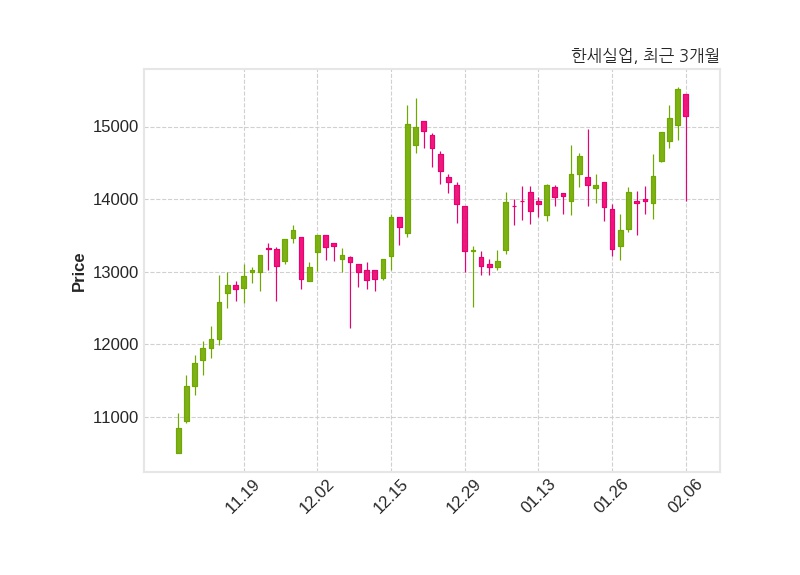 한편, 한세실업은 장 마감 이후 해당 기업공시를 발표했으며 오늘 종가가 15,150원, 거래량은 181,966주로, 직전 거래일 대비 360원(-2.32%) 하락했다.
