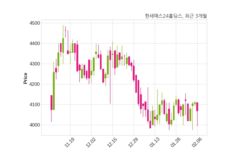 한편, 한세예스24홀딩스는 장 마감 이후 해당 기업공시를 발표했으며 오늘 종가가 4,070원, 거래량은 19,740주로, 직전 거래일 대비 40원(-0.97%) 하락했다.