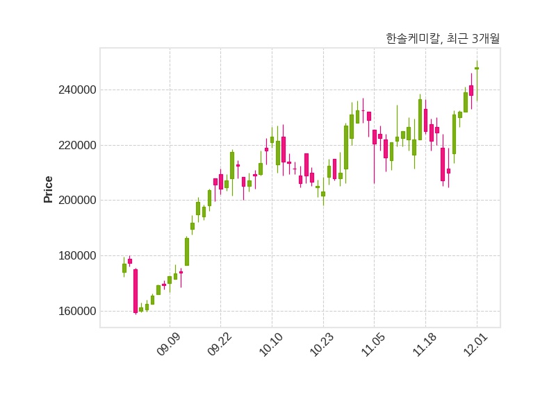 한편, 한솔케미칼은 장 마감 이후 해당 기업공시를 발표했으며 오늘 종가가 248,000원, 거래량은 60,716주로, 직전 거래일 대비 10,000원(+4.2%) 상승했다.