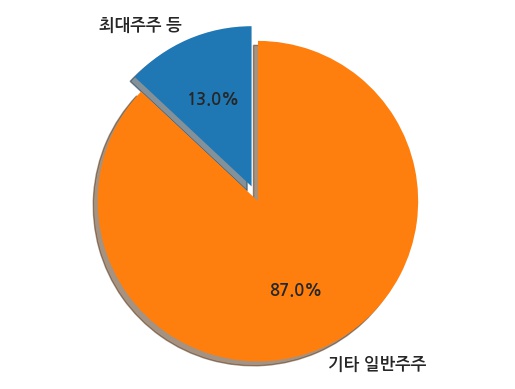 현재 최대주주 등 특별관계자의 소유주식은 총 1,475,805주로 발행주식 총수의 13.02%이다.