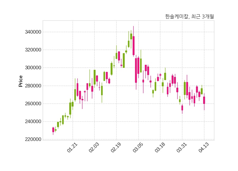 한솔케미칼은 특별관계자 조동혁의 지분율이 13.09%에서 13.84%로 변동했다고 13일 공시했다. 한편, 한솔케미칼은 장 마감 이후 해당 기업공시를 발표했으며 오늘 종가가 260,000원, 거래량은 140,603주로, 직전 거래일 대비 17,000원(-6.14%) 하락했다.