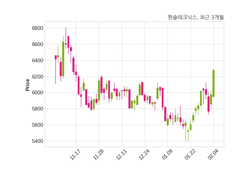한편, 한솔테크닉스는 장 마감 이후 해당 기업공시를 발표했으며 오늘 종가가 6,280원, 거래량은 413,558주로, 직전 거래일 대비 300원(+5.02%) 상승했다.