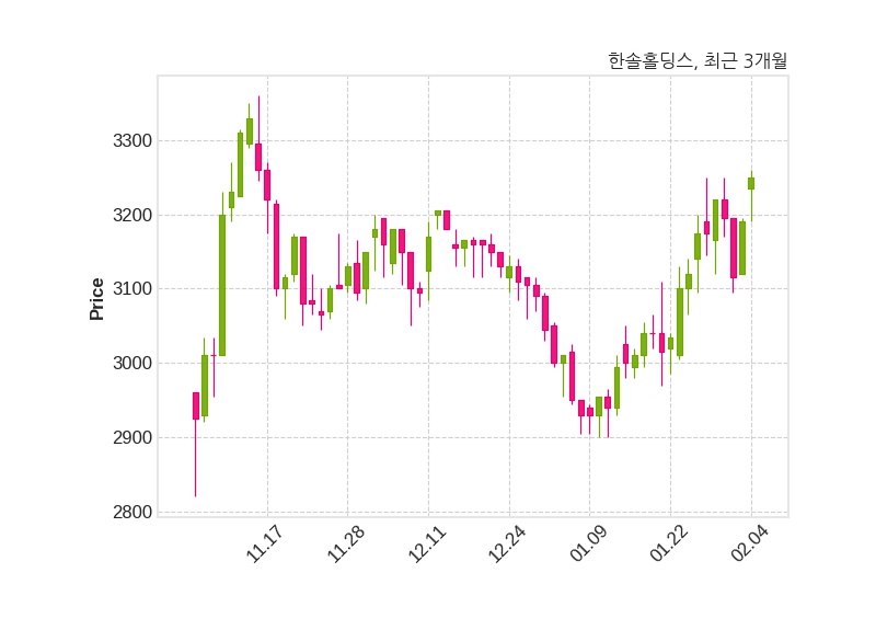 한편, 한솔홀딩스는 장 마감 이후 해당 기업공시를 발표했으며 오늘 종가가 3,250원, 거래량은 133,443주로, 직전 거래일 대비 60원(+1.88%) 상승했다.
