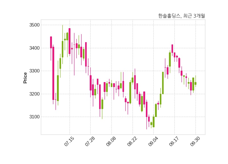 한편, 한솔홀딩스는 장 마감 이후 해당 기업공시를 발표했으며 오늘 종가가 3,250원, 거래량은 30,688주로, 직전 거래일 대비 20원(-0.61%) 하락했다.
