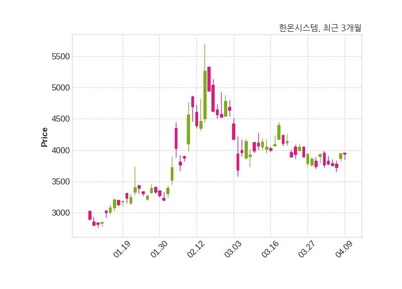 한편, 한온시스템은 장 마감 이후 해당 기업공시를 발표했으며 오늘 종가가 3,940원, 거래량은 4,765,197주로, 직전 거래일 대비 10원(-0.25%) 하락했다.