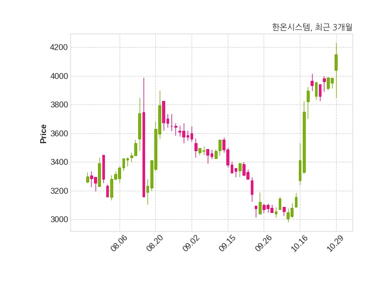 한편, 한온시스템의 13시 35분 현재주가는 4,150원으로 직전 거래일 대비 165원(+4.14%) 상승이며, 거래량은 3,985,779주이다.